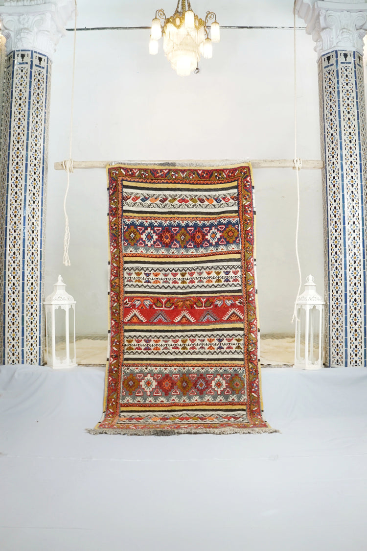 Its vibrant, earthy palette and complex geometric patterns tell a unique story, making it a true centerpiece for any room. Perfect as a runner, hallway accent, or a statement wall hanging.